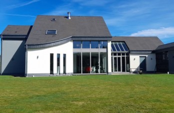 Proche de la frontière Luxembourgeoise et au calme d’un village ardennais, découvrez cette spacieuse villa et son grand jardin plein sud. La propriété entretenue avec amour impressionne par son agencement spacieux et son intérieur haut de gamme et lumineux. Le design moderne combiné aux matériaux de construction de haute qualité, répond aux exigences de la vie contemporaine. Au REZ; le hall d’entrée, le WC séparé et une verrière qui ouvre la vue sur la campagne verdoyante. Une porte en verre s’ouvre vers les pièces de vie ; la salle à manger qui baigne dans la lumière, des larges baies vitrées avec accès à la terrasse, le salon et un poele à bois (K7) entre deux. Un bar sépare la cuisine av. tous les appareillages et à l’arrière une buanderie équipée. Au même niveau 1 gr. chambre et sa s/b attenante. Le garage communique avec l’habitation et la terrasse. Le 1.ET est accessible par un sas aux parois rondes en verre. L‘escalier en marbre monte dans la pièce ouverte sur presque toute la surface. Cet espace dispose d’un coin salon, un espace de travail (bureau) et de détente. Une 2ème chambre, ainsi que la salle d’eau av WC séparé. Ext:  Un car-port en dur prolonge le garage, sa face avant de 3m est ouverte sur la terrasse. Idéal pour les barbecues des jours plus frais. Cc au mazout, système d’alarme. Convient  pour vivre et travailler sous un même toit! Arbrefontaine est un village ardennais avec un centre-ville pittoresque (commune de Lierneux) à environ 10 min. de la ville de Vielsalm, et à 20 min de Malmedy et de l’E40, ainsi que la frontière luxembourgeoise avec tous ses commerces. Infos détaillés et visite via info@immoge.com