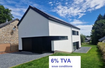 VENTE sous régime de 6% de TVA (sous conditions). Découvrez cette nouvelle construction contemporaine, répondant aux dernières normes et exigences énergétique (PEB A++) Située dans un endroit très calme et à deux pas du centre de Waimes avec toutes les commodités. L’intérieur vous ravira par ses spacieux volumes ouverts et très lumineux. Le hall d’entrée donne sur le garage avec un wc visiteur, quelques marches plus bas un spacieux séjour (45m²) baigné de lumière dès le matin, avec cuisine et buanderie, bordée par le jardin. A l’ET : le hall de nuit, 4 chambres, dont une suite parentale avec dressing et salle de bain attenante et une 2ème s/bain avec WC séparé. Le tout équipé de matériaux de qualité. Cette villa très basse énergie est dotée de panneaux photovoltaïques et une batterie de 5 KW (p. doubler la capacité), VMC, pompe à chaleur, triple vitrage PVC avec couche de protection solaire (côté sud), cc au sol dans le garage, câblage p spots ext., cuisine non équipée (visuels à disposition). Les abords du terrain sont terminés, incluant des pl de parking, pelouse et un gr.terrain s’étendent à l’arrière. Le prix se décompose comme suit : 389.000€ HTVA pour la construction et 110.000€ Hfr pour le terrain. Vente sous régime de 6% de TVA (sous conditions). A découvrir sans tarder ! Contact et infos via info@immoge.com Lia Ploumen.